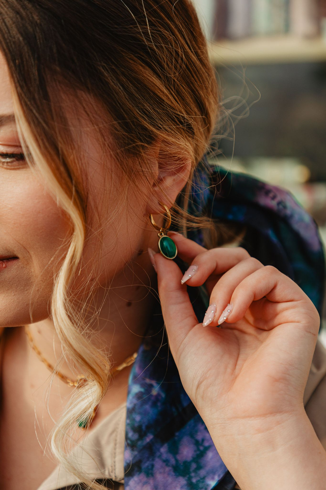 Parure complete Idunn : collier fermoir à ressort avec pendentifs amovibles et boucles. Pendentifs en acier inoxydable.