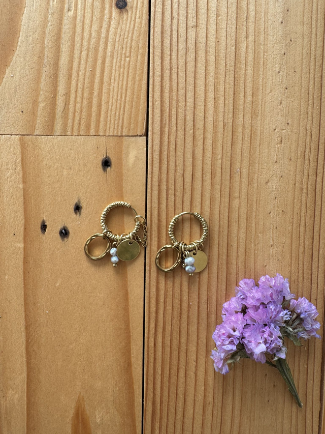 Parure complete Yukionna : collier pendants en nacre, bracelet multicolore nacre (noir, blanc, rose), boucles pendants acier inoxydable et nacre.